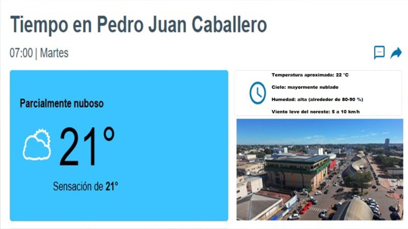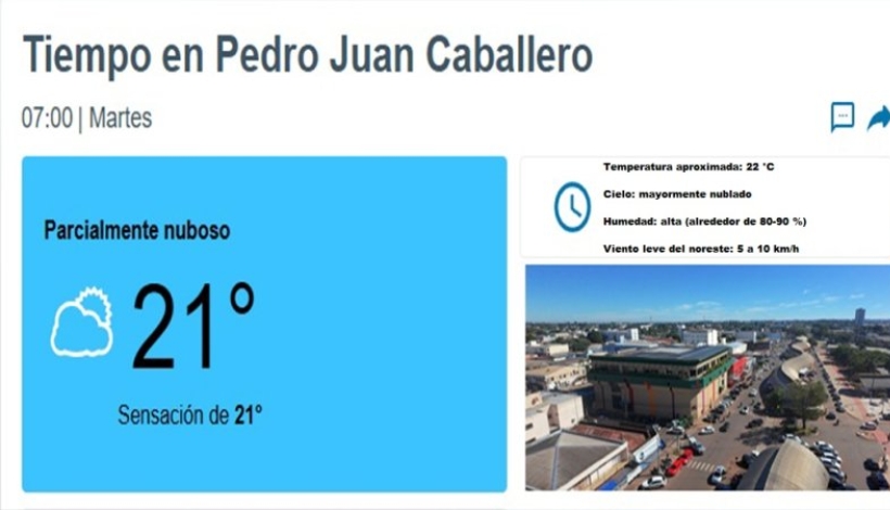 Tiempo local en Pedro Juan Caballero