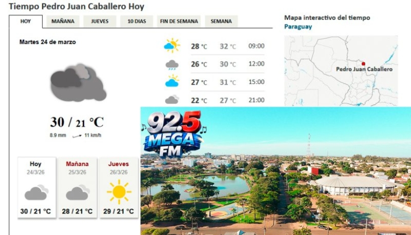 Predicción del tiempo Pedro Juan Caballero 24 de marzo de 2026